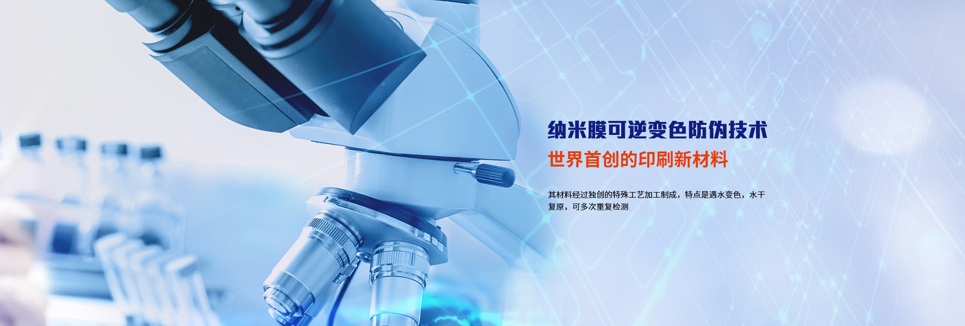 核徑跡防偽技術(shù):是國(guó)家科技部唯一列為國(guó)家重點(diǎn)推廣的防偽科技項(xiàng)目;納米水顯膜可逆變色材料:世界首創(chuàng)高科技印刷包裝防偽新材料。